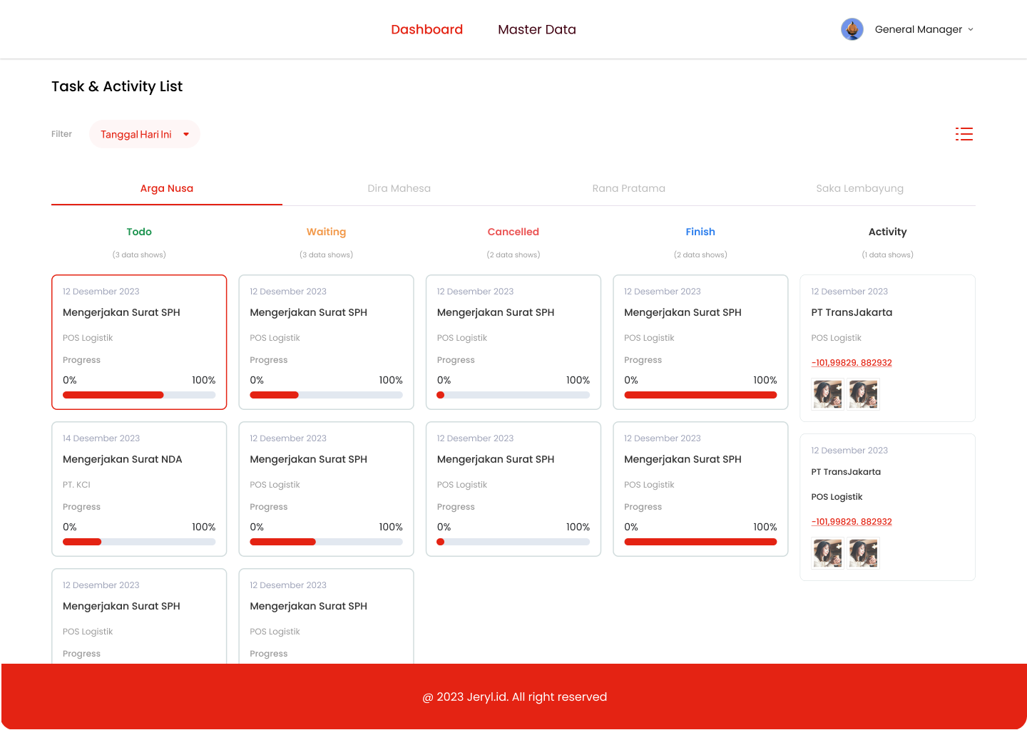 - Task and activity listing UI