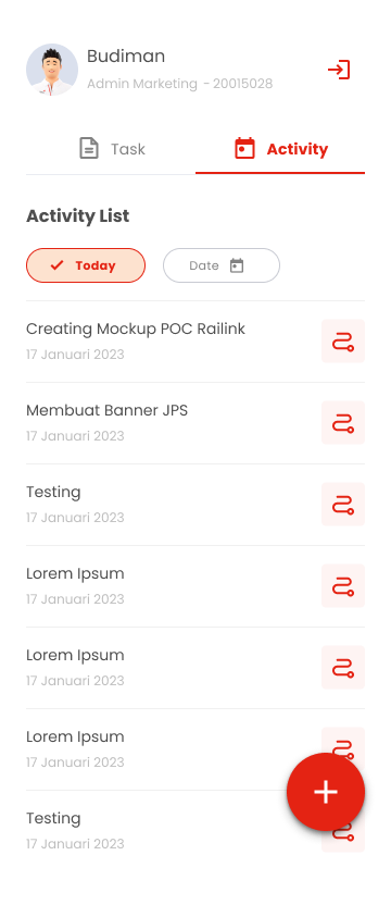 - Task and activity listing UI